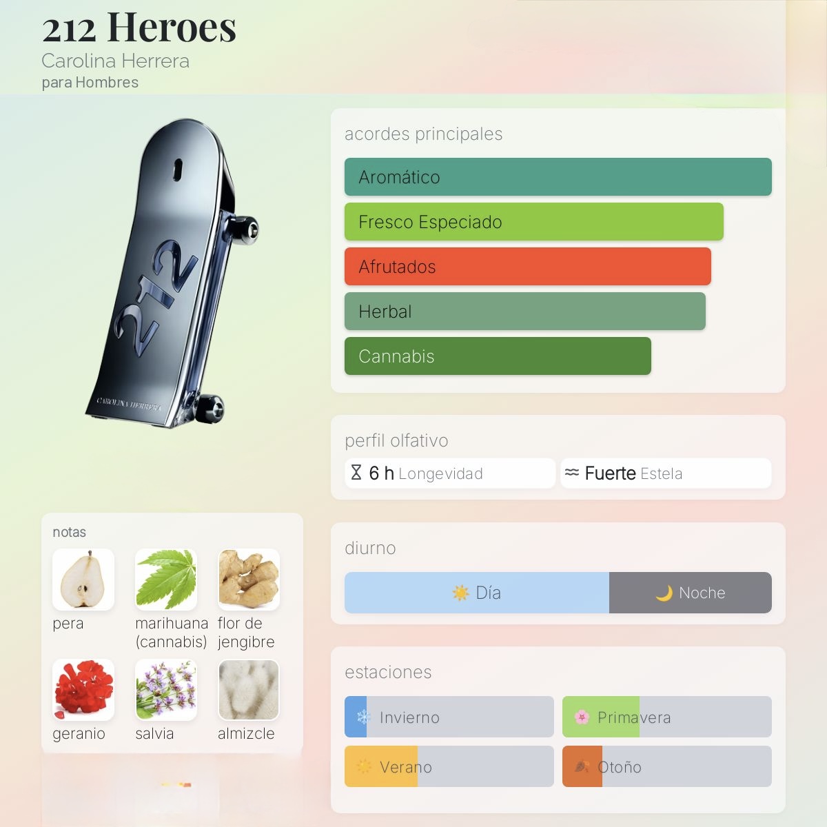 212 Heroes es una fragancia de la familia olfativa Aromática Frutal para Hombres.