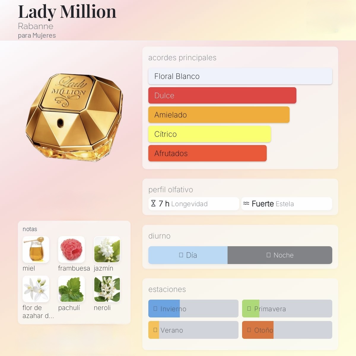 Los ángeles type Lady Million es una fragancia de la familia olfativa Floral Frutal para Mujeres.