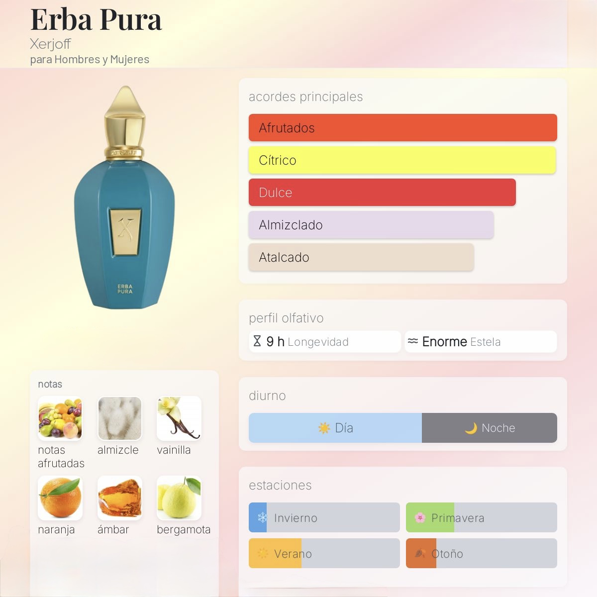 Marrakech type Erba Pura Xerjoff es una fragancia que traslada tus sentidos a un oasis de frescura y sofisticación. Pertenece a la familia olfativa Oriental, masculina.