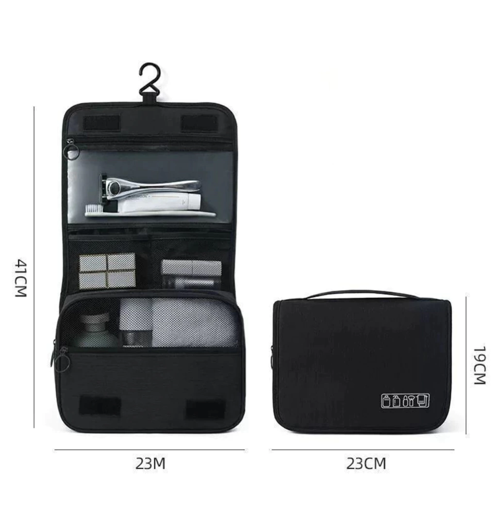 Neceser de viaje con gancho: la solución ideal para tus viajes. Este neceser compacto se despliega para revelar múltiples compartimentos, perfectos para organizar tus productos de higiene y maquillaje con total comodidad. Su práctico gancho te permite colgarlo en cualquier lugar, facilitando el acceso rápido y ordenado.