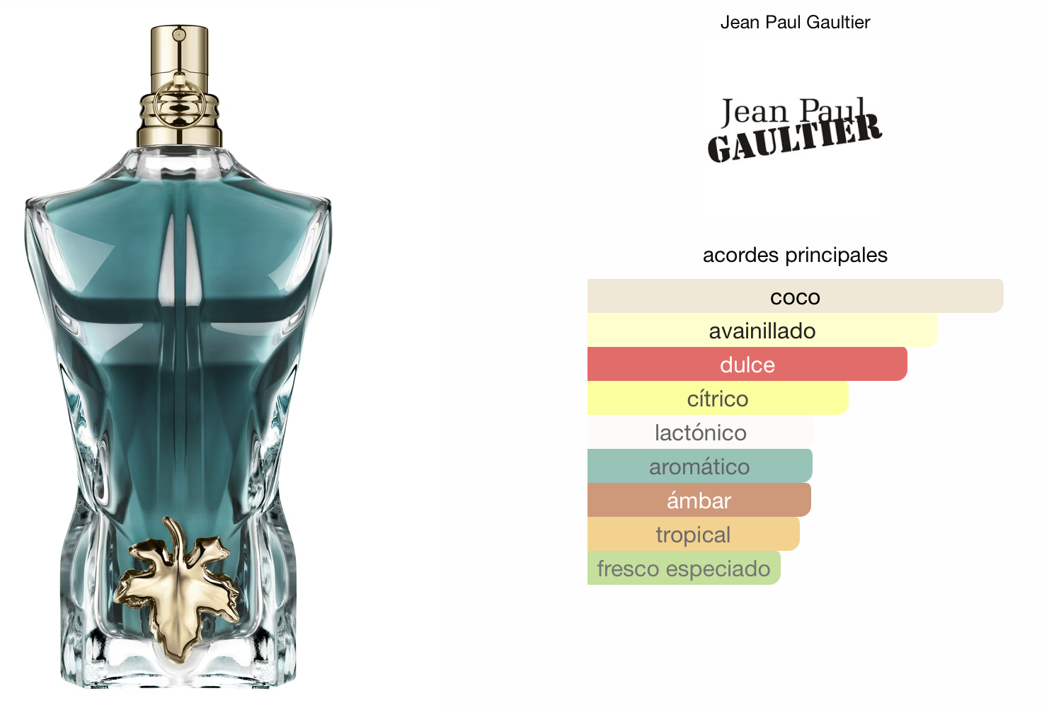 Las Notas de Salida son piña, iris, ciprés y jengibre; las Notas de Corazón son coco y notas amaderadas; las Notas de Fondo son haba tonka, sándalo, ámbar y ámbar gris.