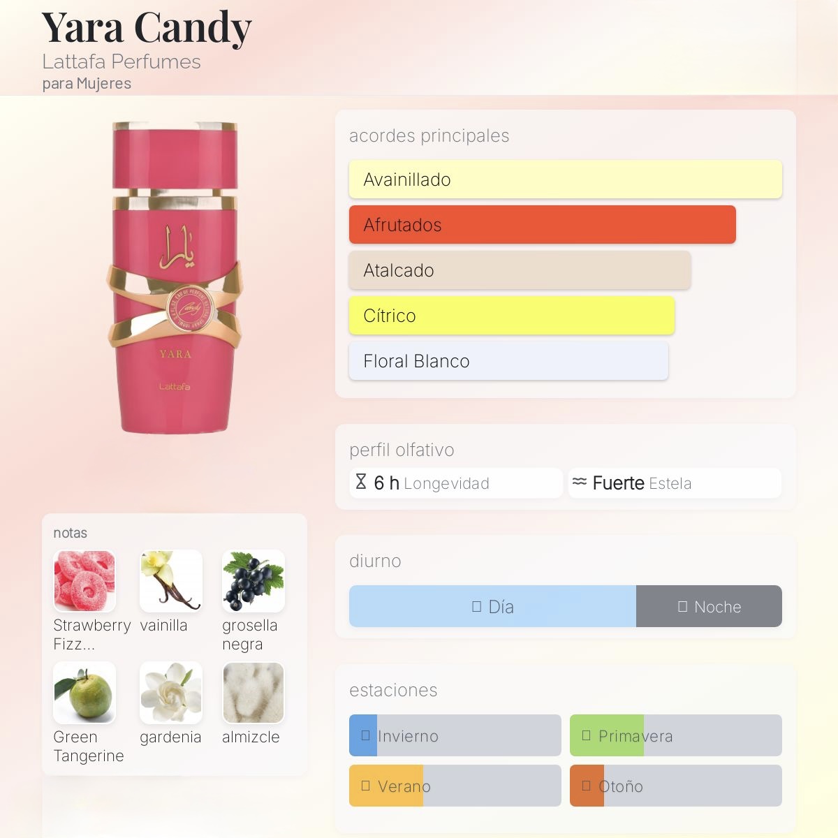 Perfecta para cualquier ocasión, Yara Candy es la elección ideal para quienes buscan un perfume que combine frescura, dulzura y sofisticación en un solo frasco. ¡Descubrí esta joya aromática y dejá que tu presencia hable por vos!